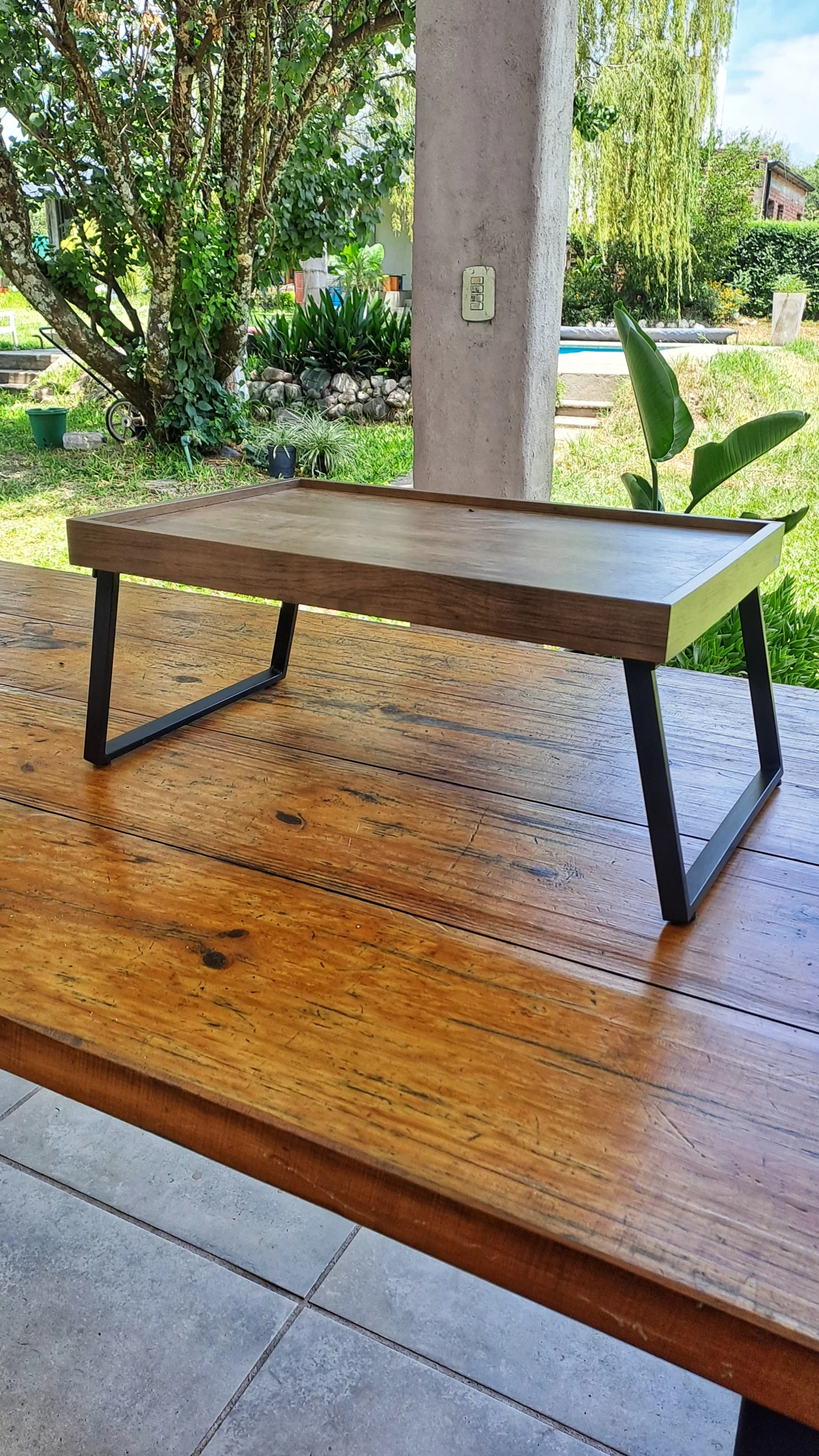 Bandeja de cama con patas de acero.