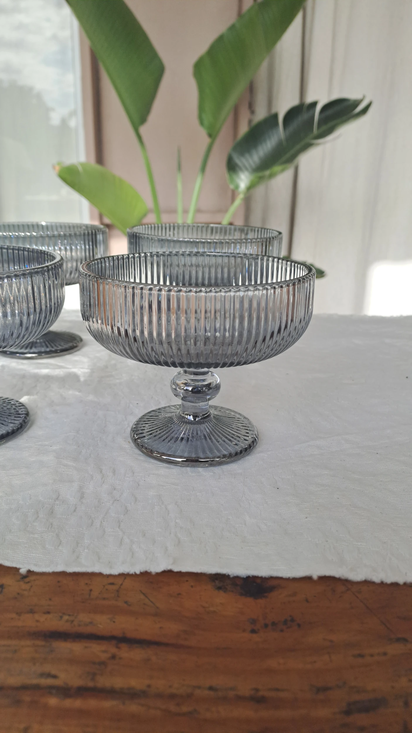 Compotera de vidrio Lineal labrada Gris 10x12cm x6