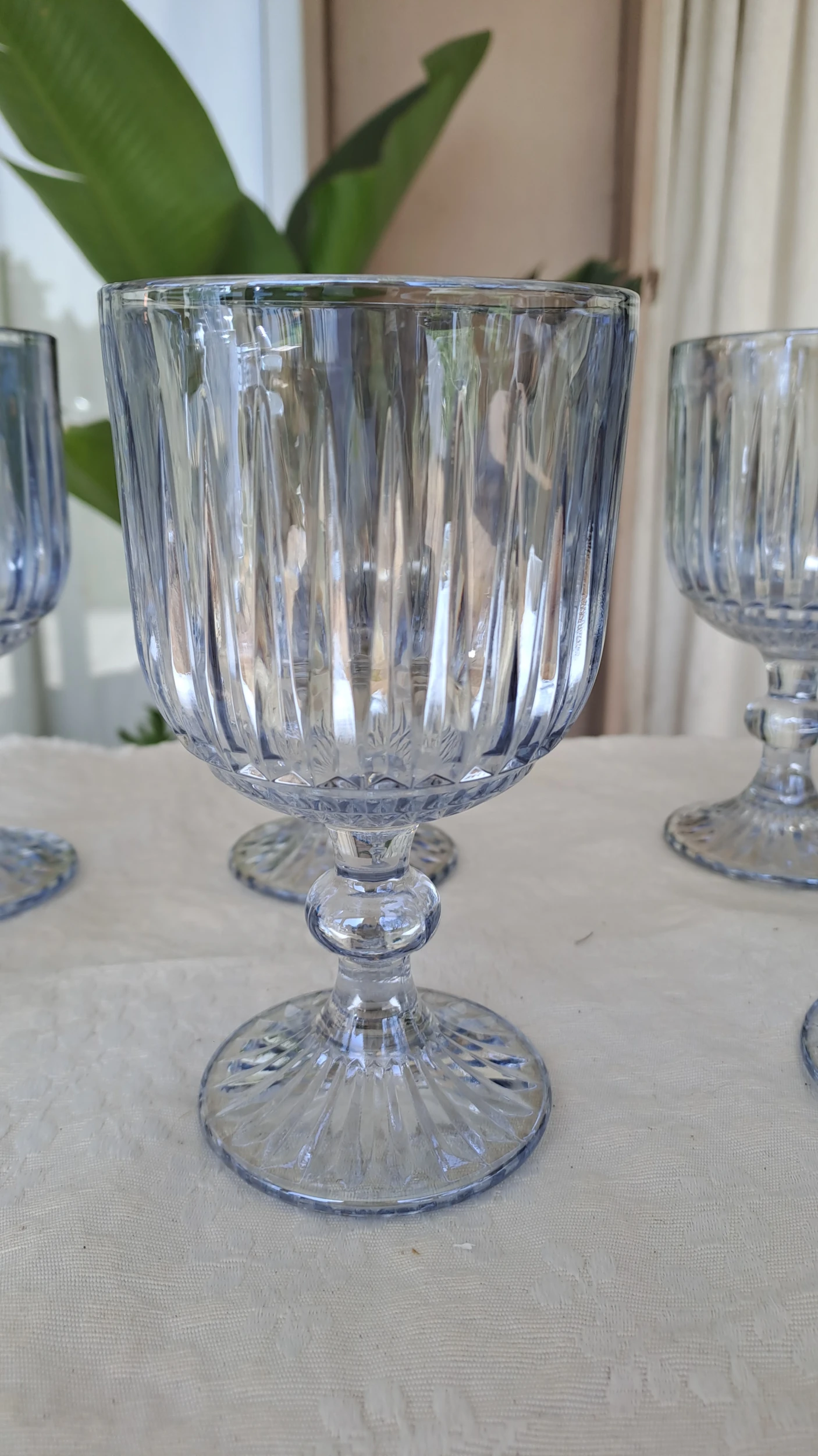 Copas de vidrio labradas diamnte gris 8.7x16.4cm x6 unidades.